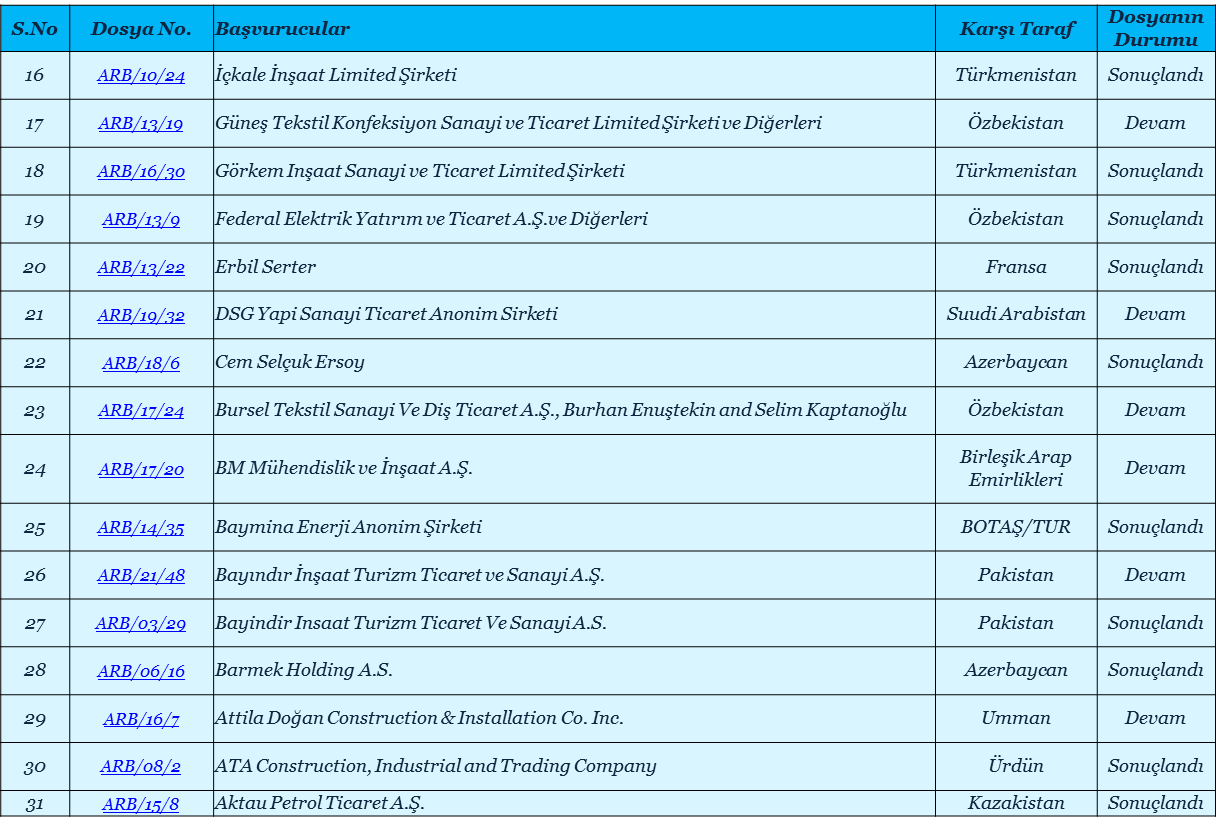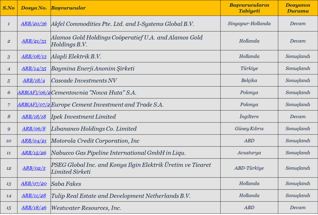 ICSID Tahkiminde Görülen Yabancı Yatırımcılarla Türkiye Arasındaki Uyuşmazlıklar